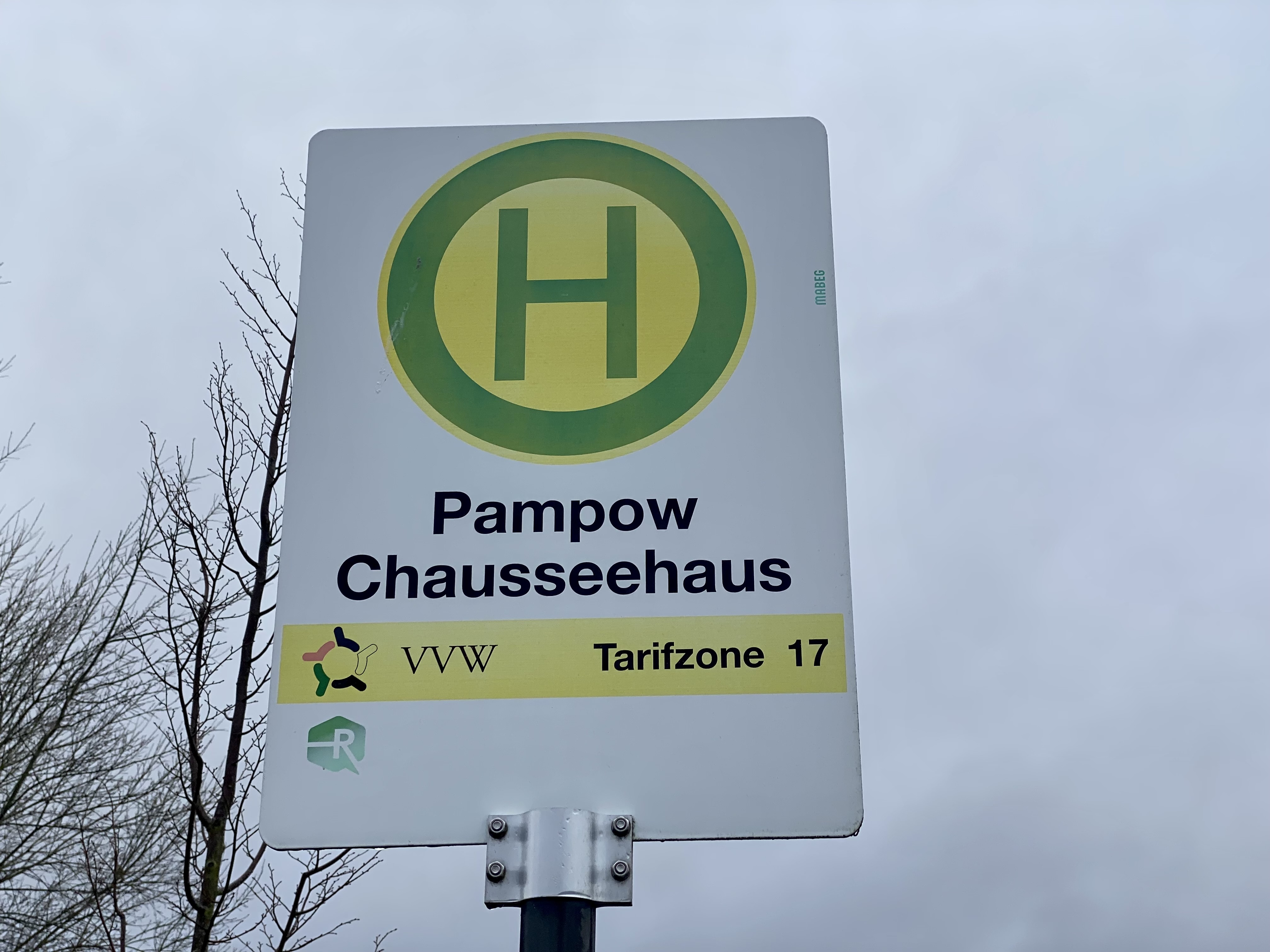 An der B104 am Abzweig zum Teterower Ortsteil Pampow gibt es dieses vergleichsweise große Chausseehaus mit entsprechender Haltestelle.