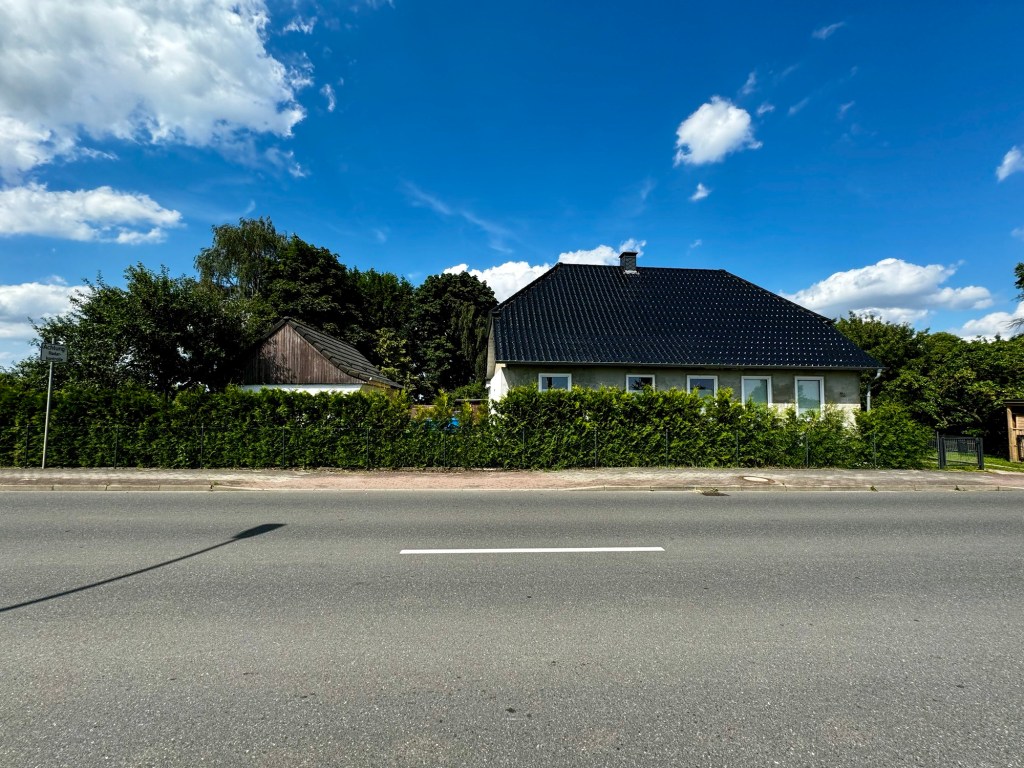 Wer Schwerin auf der B321 in Richtung Osten verlässt, kommt hier südlich von Pinnow an dem Chausseewärterhaus vorbei. Auf historischen Karten ist es eingetragen, heute beim Vorbeirauschen kaum noch erkennbar… Fotografiert im Mai 2024.