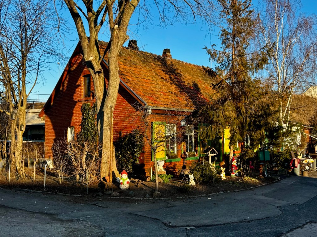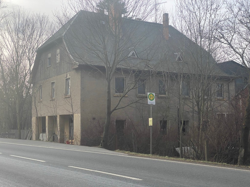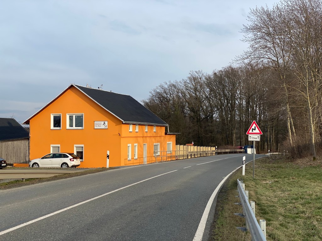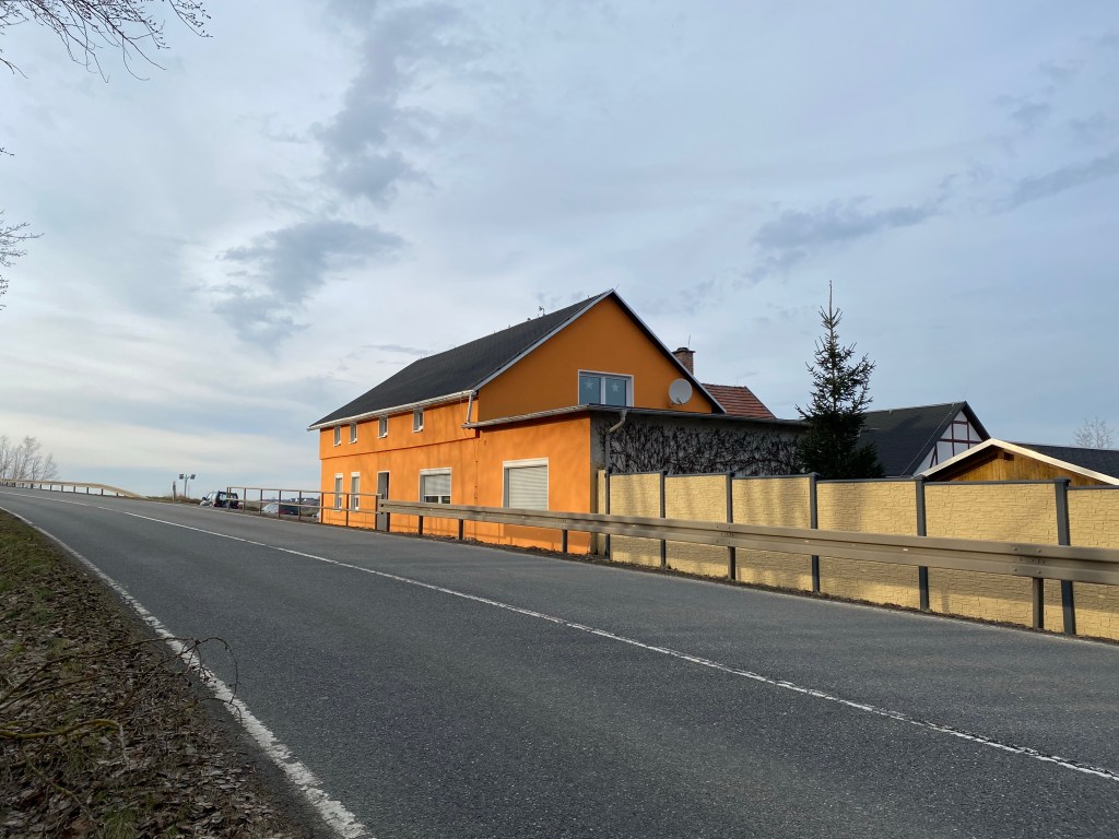 Heute liegt das hier gezeigte Chausseehaus abseits vom Durchgangsverkehr, ist aber durch andere Verkehrsrouten in eine Art „toten Winkel“ eingeklemmt. Hinterm Haus erkennt man eine Brücke für eine vierspurige Erfurter Hauptstrecke, rechts vom Haus (nicht im Foto) verläuft eine Eisenbahnstrecke. Ein Blick auf die Karte bei Openstreetmap macht es vielleicht deutlicher. Vermutlich verlief die heutige K54 zur Bau/Nutzungszeit des Gebäudes komplett anders…